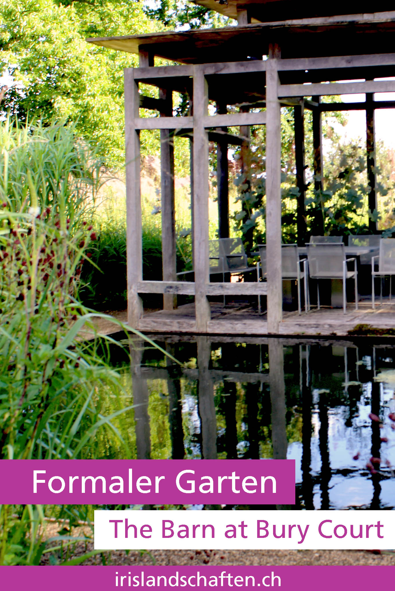 Meist werden architektonische Elemente, wie Wasserbecken und Skulpturen als Blickfang verwendet. Ein berühmtes englisches Beispiel für einen formalen Garten ist „The Barn at Bury Court“.