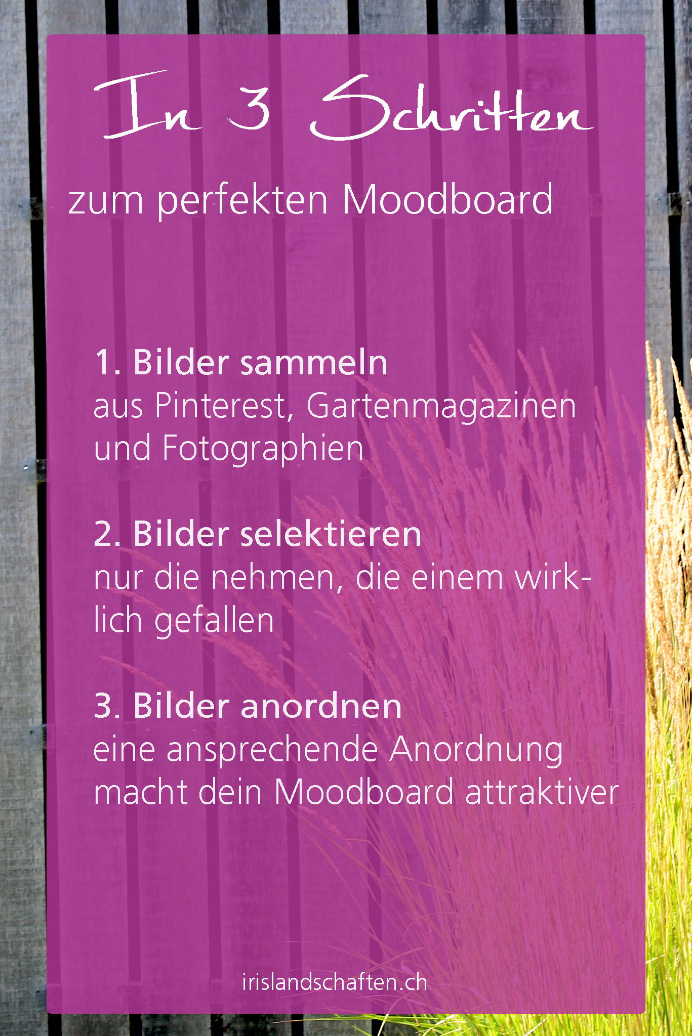 Und voilà du hast ein wichtiger Schritt zum Thema Moodboard in der Gartenplanung gemacht und deine Gartenträume visualisiert. Mit Pinterest Garten planen ist kinderleicht und macht extrem Spass.