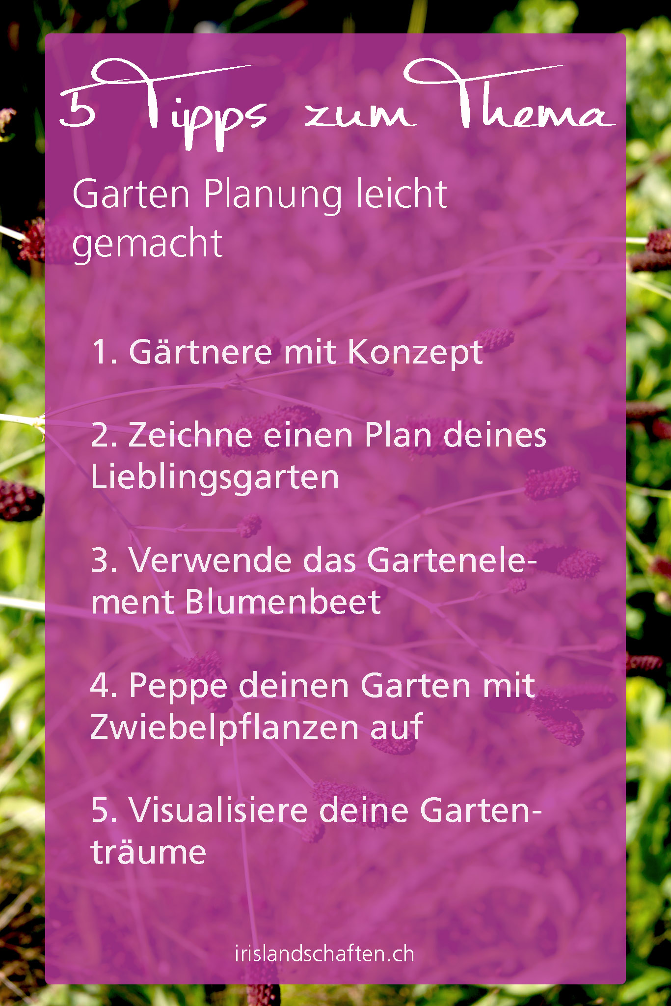 Pingback: Gartenprojekt starten mit wenig Geld - irislandschaften.ch